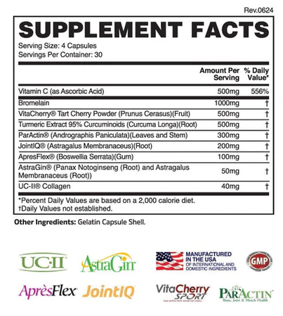 – 1000mg Clinically dosed Bromelain to inflammation reduction