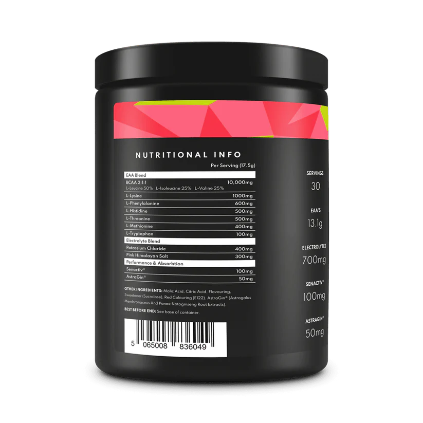 13gms EAA | 700mg Electrolyte Blend | 100mg Senactive |
